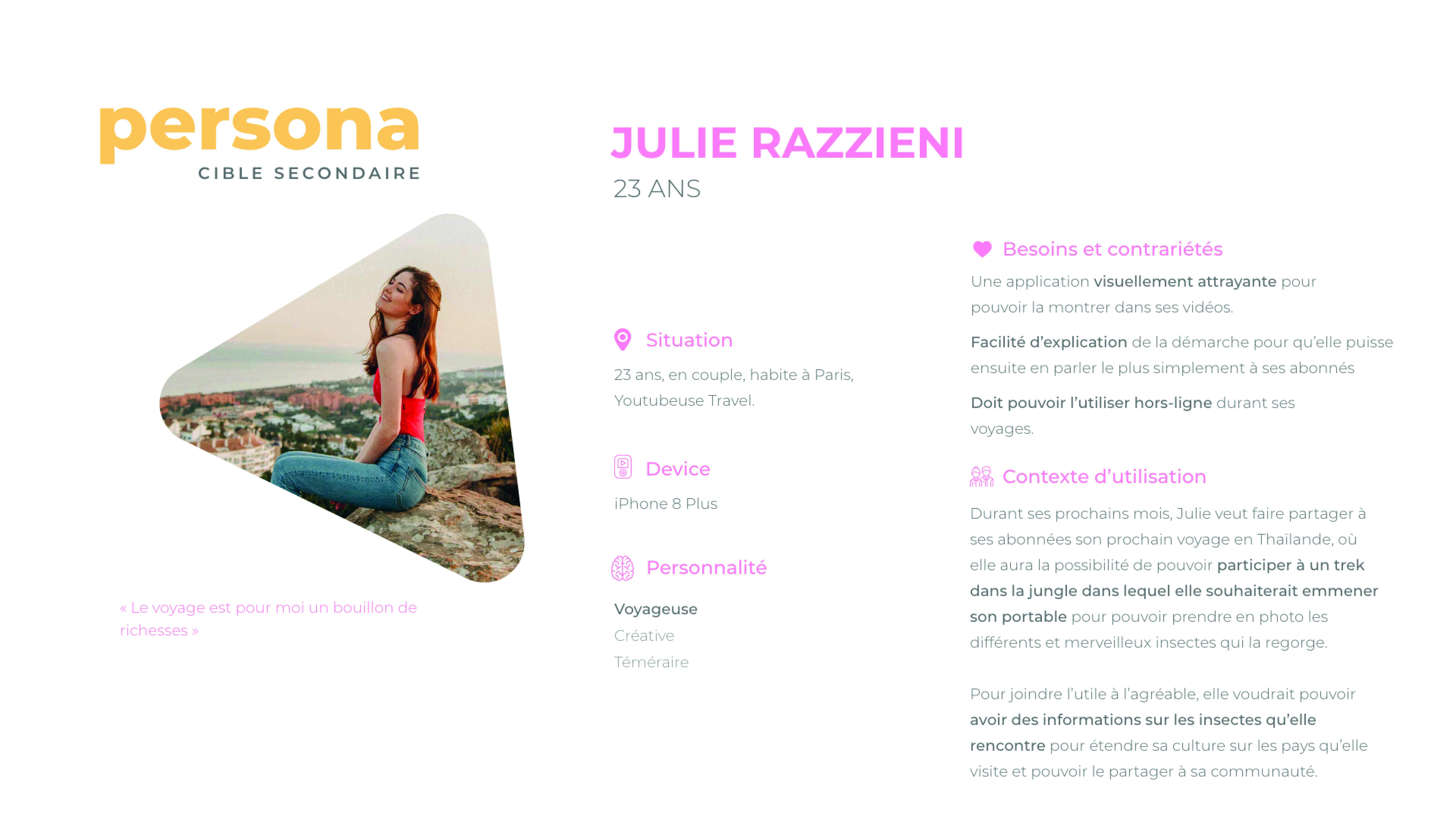 Pour effectuer ce projet, j’ai pu effectuer dans un premier temps une recherche des différentes cibles potentielles et ainsi créer des personas, un benchmark des applications concurrentes.