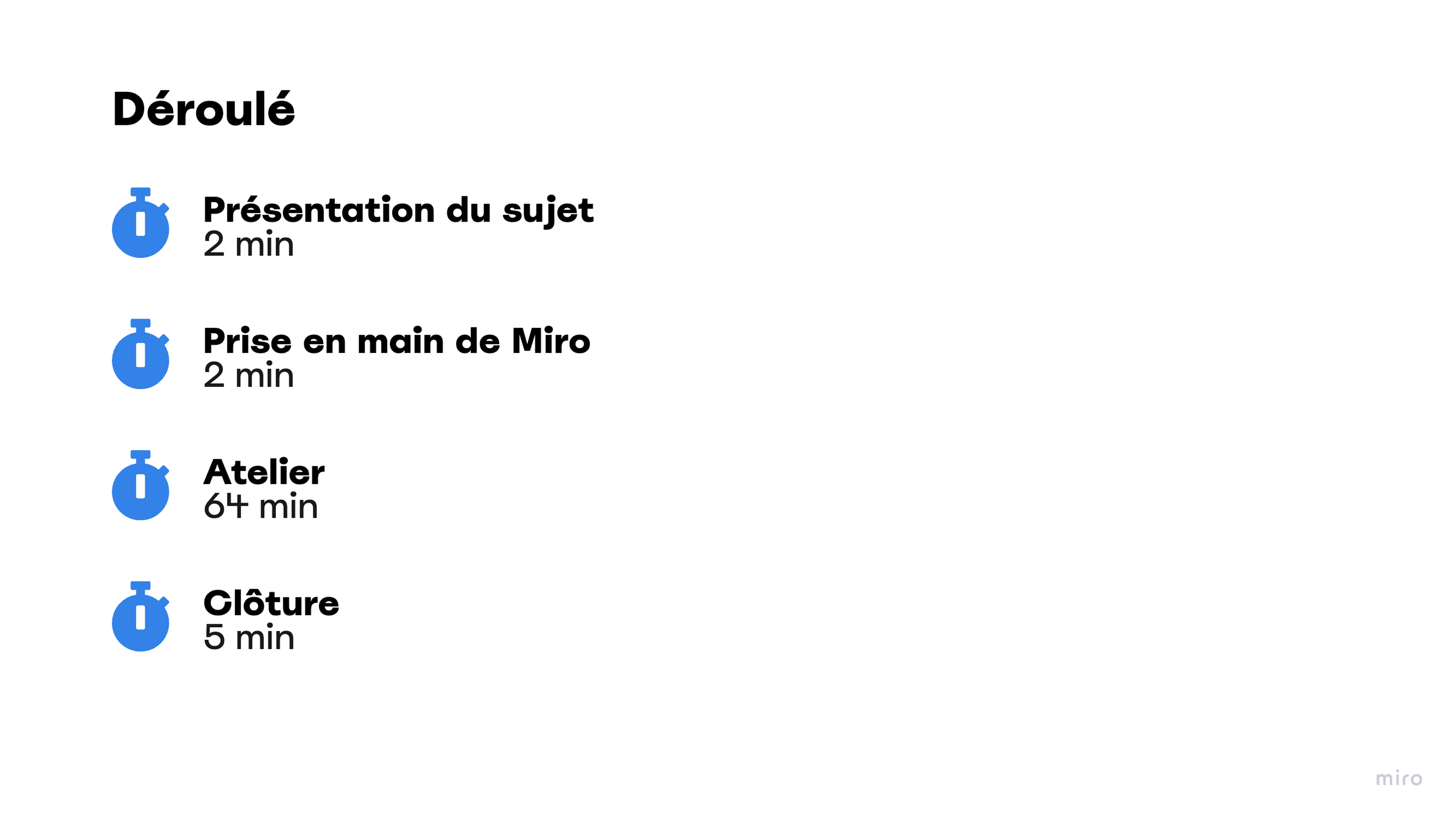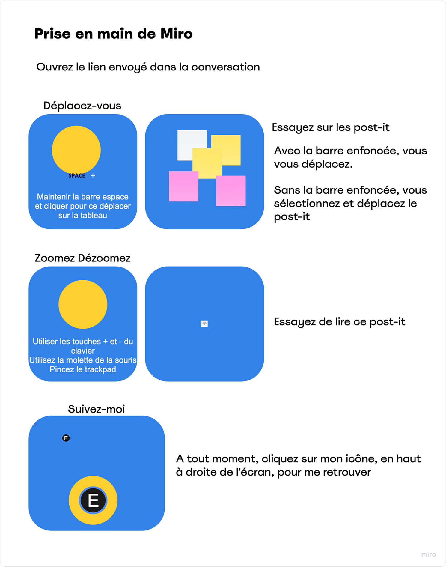 Cet atelier a été introduit par une présentation de l’atelier ainsi qu’une prise en main de MIRO pour les moins à l’aise. J’ai pu leur proposer un atelier sous forme de table ronde ou chacun a pu passer sur chaque thématique proposée pour recueillir le maximum d’information.