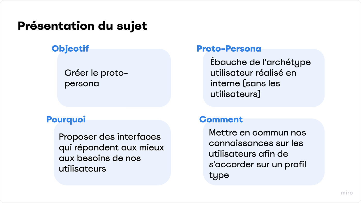 Réalisation de différents ateliers proto-persona en fonction du profil des différents utilisateurs.